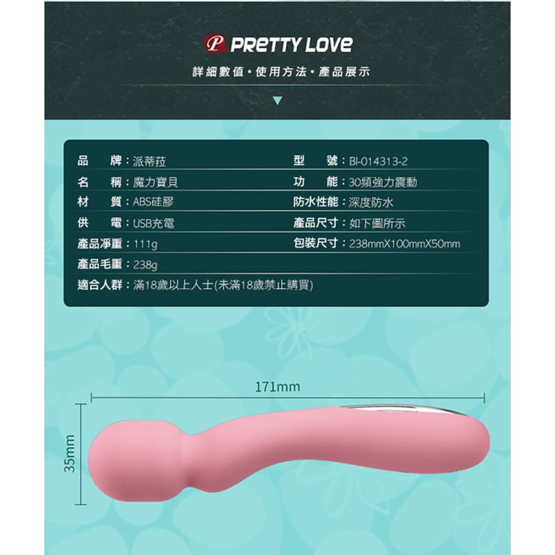 PRETTY LOVE 派蒂菈 Gladys 格拉迪斯之魔力寶貝 強震按摩 30變頻究極AV棒 USB充電+深度防水PRETTY LOVE 派蒂菈 Gladys 格拉迪斯之魔力寶貝 強震按摩 30變頻究極AV棒 USB充電+深度防水Sex Toys『VIVI 情趣』情趣用品專賣商城 R20 按摩棒 飛機杯 各國成人玩具代理❤️