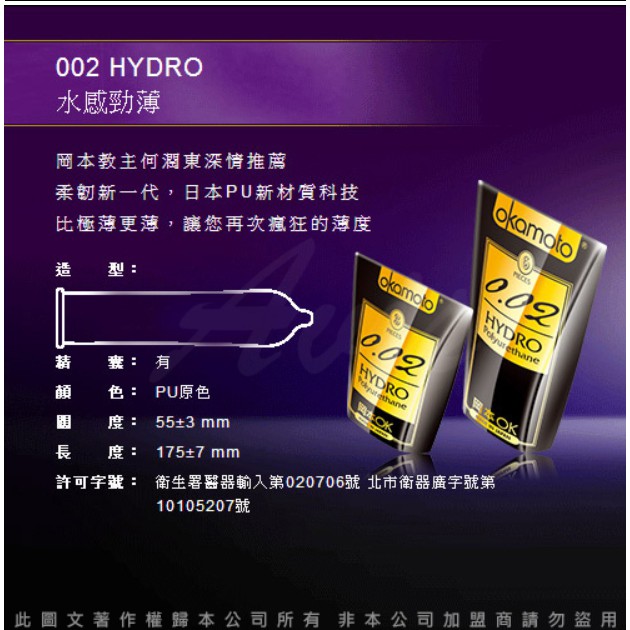 岡本002-HYDRO 水感勁薄保險套(6入裝)岡本002-HYDRO 水感勁薄保險套(6入裝)Condoms『VIVI 情趣』情趣用品專賣商城 R20 按摩棒 飛機杯 各國成人玩具代理❤️