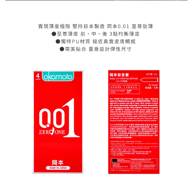 okamoto岡本OK 001至尊勁薄保險套 4片裝岡本001至尊勁薄 4片裝Condoms『VIVI 情趣』情趣用品專賣商城 R20 按摩棒 飛機杯 各國成人玩具代理❤️