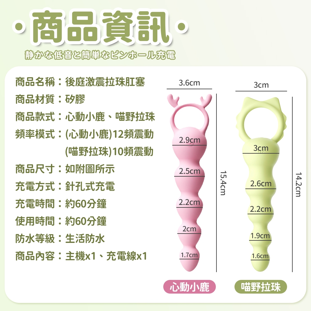 【今天買 明天到】喵野拉珠 12頻爆震 萌鹿激震拉珠 肛塞 震動跳蛋 震動肛塞 拉珠 10頻震動 迷你肛塞喵野拉珠 綠|心動小鹿 粉Sex Toys『VIVI 情趣』情趣用品專賣商城 R20 按摩棒 飛機杯 各國成人玩具代理❤️