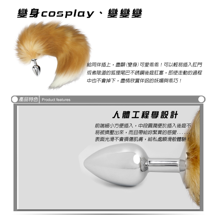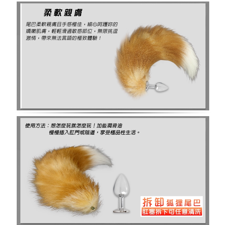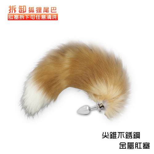 COSPLAY 真毛白紋狐狸精尾巴不銹鋼金屬肛塞﹝可拆卸尾巴﹞(SM.精品.房間.情趣 情趣用品) 角色扮演白|金Sex Toys「享樂網❤情趣用品|台灣現貨速發🚀」