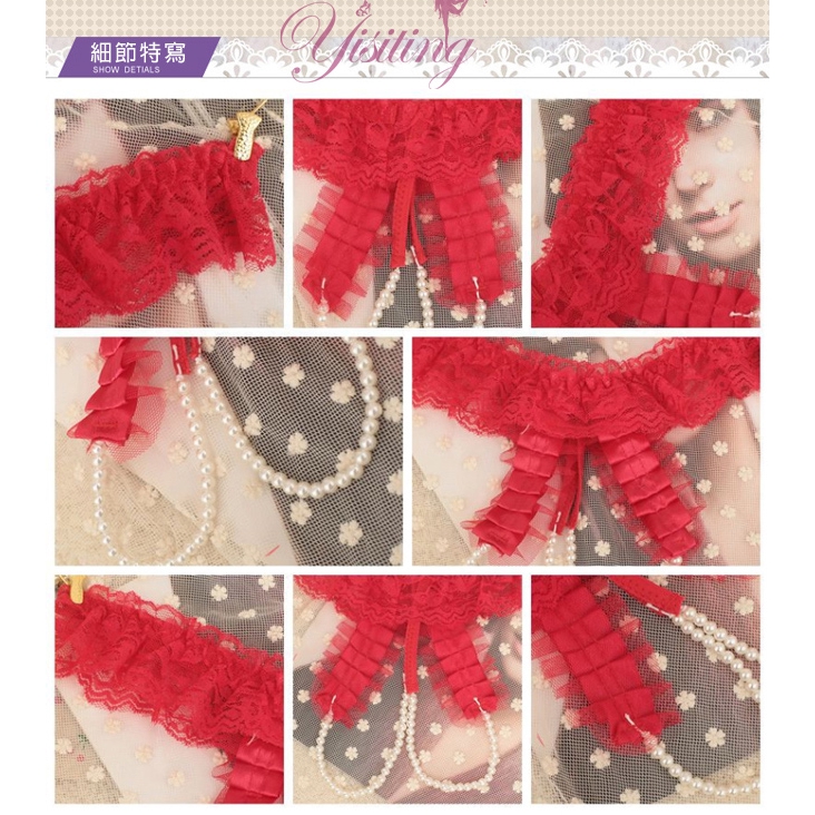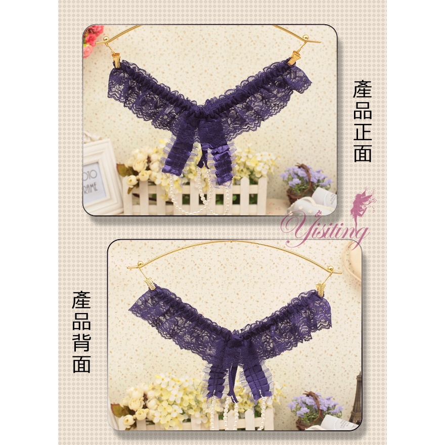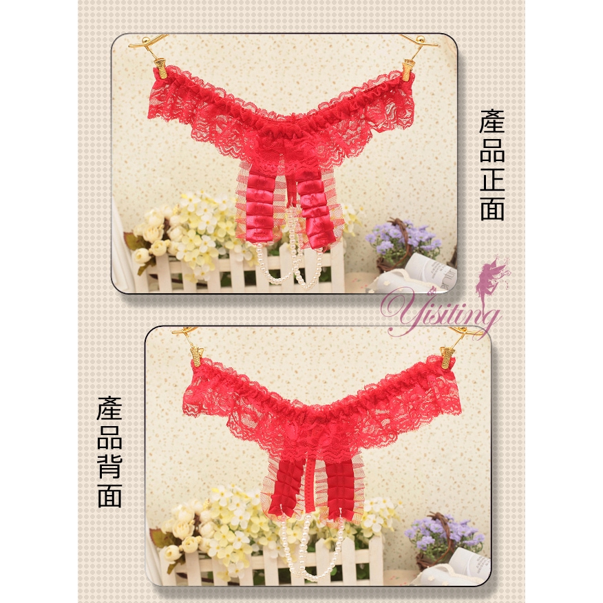 激情誘惑蕾絲珍珠按摩開檔鏤空丁字褲 女內褲 情趣性感內褲 誘惑蕾絲褲 女三角褲 開襠內褲紅色|粉紅|紫色Panties「享樂網❤情趣用品|台灣現貨速發🚀」
