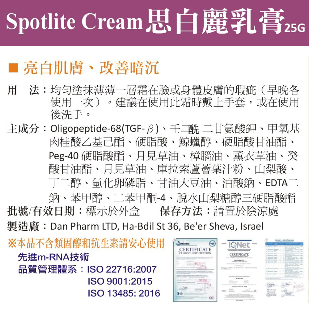 *總代理公司貨*【Spotlite】思白麗 亮白修護乳膏(25g)*總代理公司貨*【Spotlite】思白麗 亮白修護乳膏(25g)Facial MoisturizerBezzie醫材美妝館