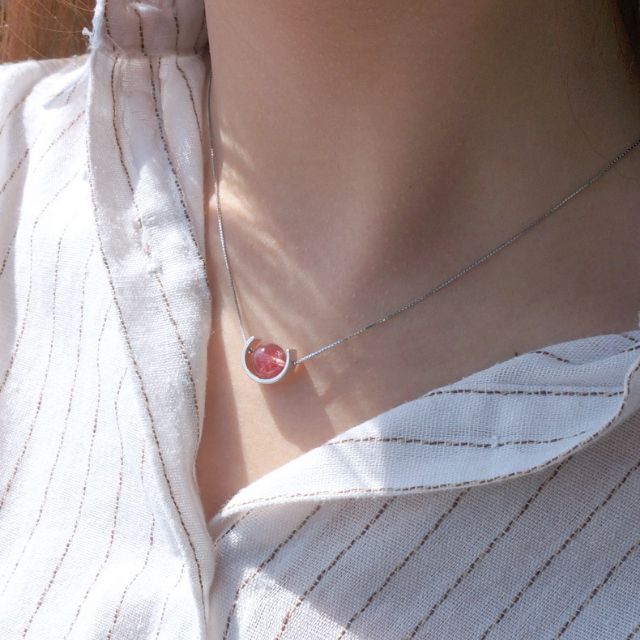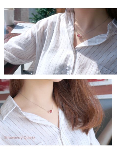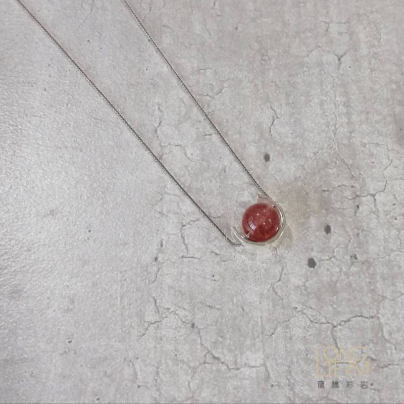 【龍騰彩岩】S925 純銀 單顆彩岩 月光石 草莓晶 項鍊 漂亮 鎖骨鍊 就是愛美 美美惹人愛 LT1310現貨-月光石|現貨-草莓晶《龍騰彩岩》台灣水晶礦石首選第一品牌