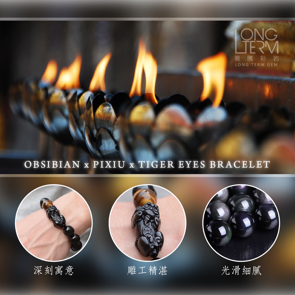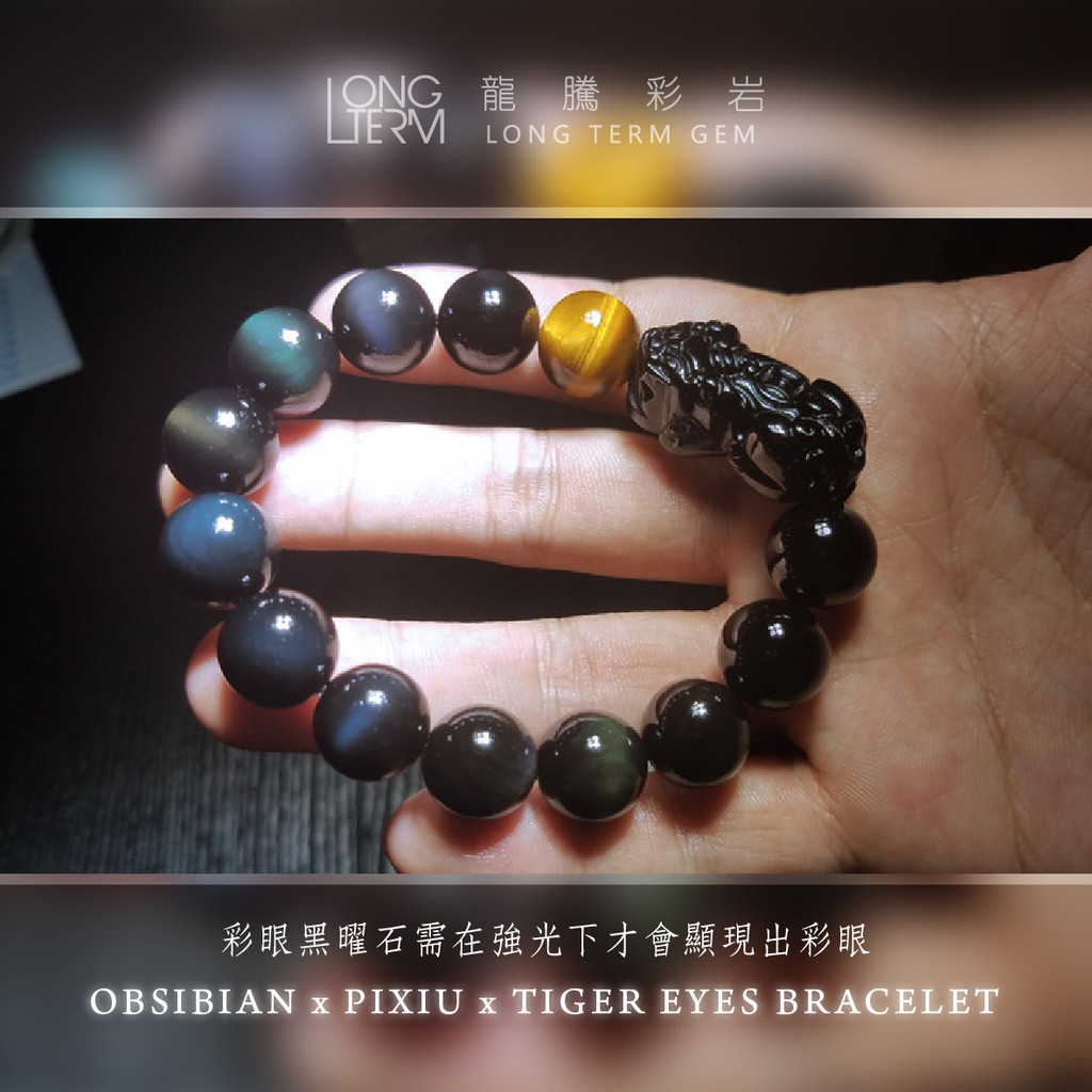 【龍騰彩岩】淨化加持 招財貔貅 黑曜石 彩眼 虎眼 手鍊 手珠 氣場好起來 財運旺旺來 獨特 LT292310mm|14mm《龍騰彩岩》台灣水晶礦石首選第一品牌
