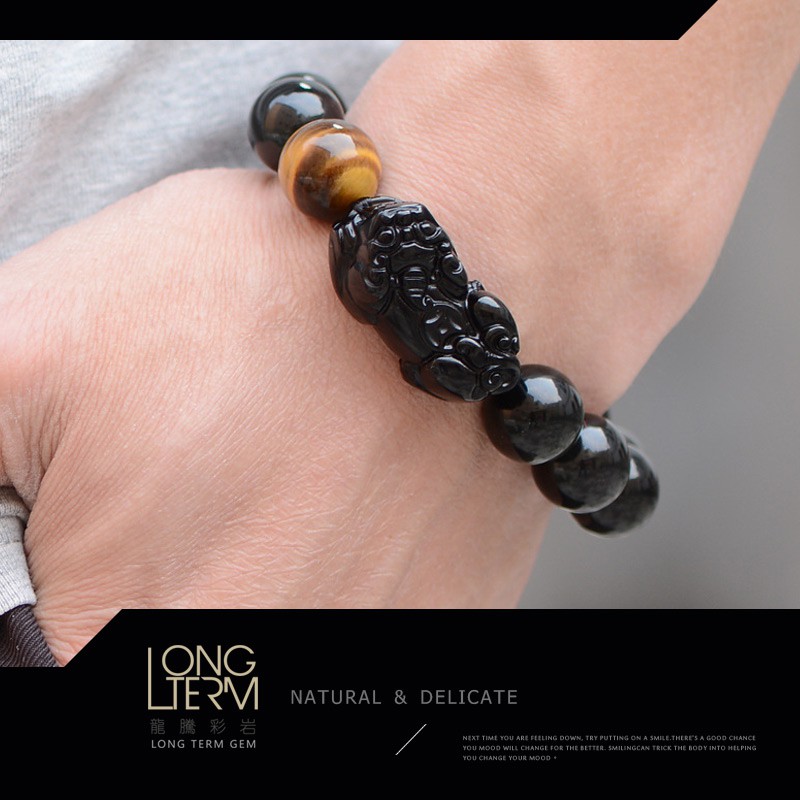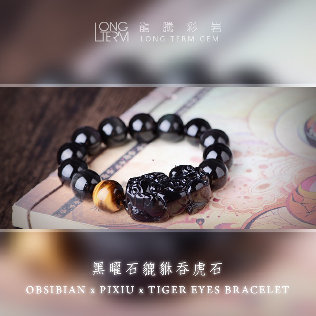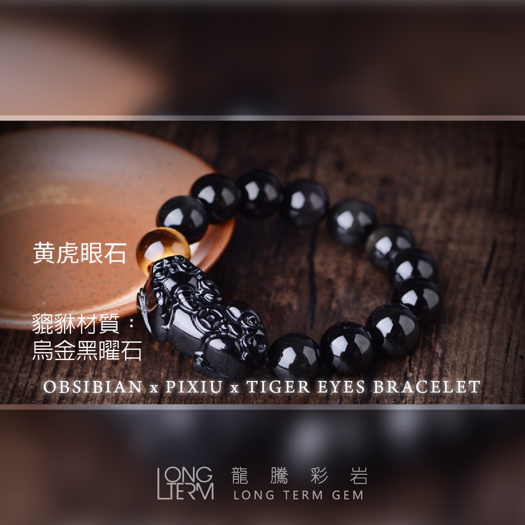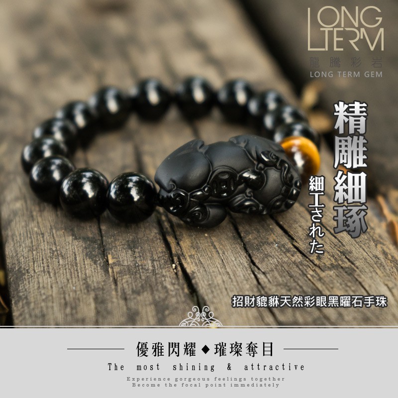 【龍騰彩岩】招財神器 招財 貔貅 黑曜石 虎眼 手鍊 手珠 氣場好起來 財運旺旺來 獨特個性風 壞運不要來 LT281712mm|14mm|16mm《龍騰彩岩》台灣水晶礦石首選第一品牌