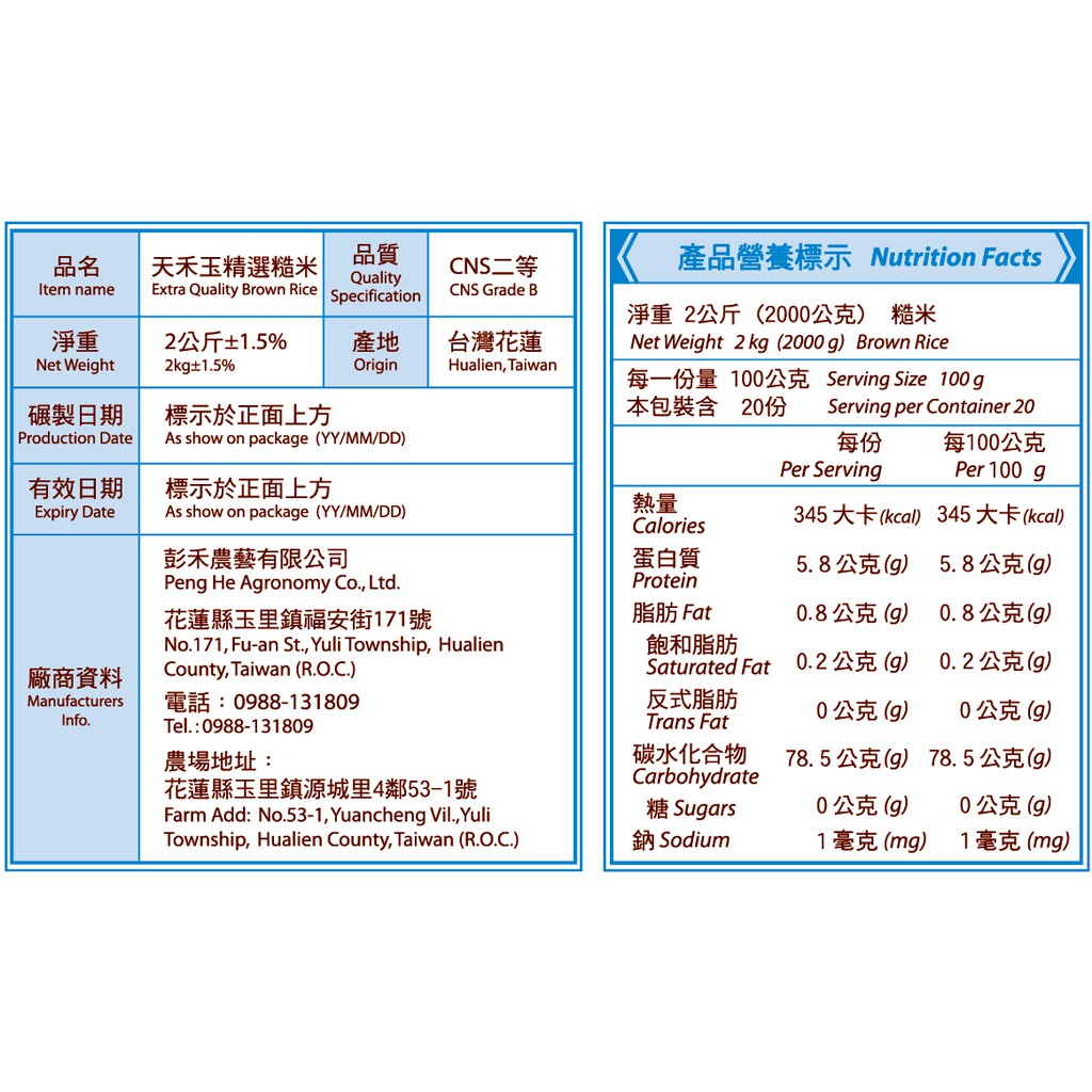 【天禾玉】冠軍米-精選糙米x1包《2公斤真空包裝》國際大獎【天禾玉】冠軍米-精選糙米x1包《2公斤真空包裝》國際大獎Rice《天禾玉》花蓮冠軍米官方旗艦店