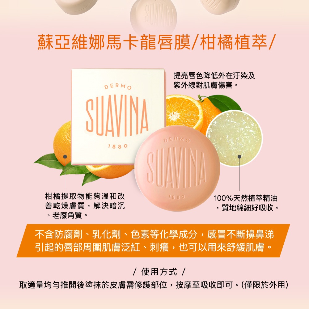 【SUAVINA蘇亞維娜】 百年馬卡龍唇膜(柑橘植萃)【SUAVINA蘇亞維娜】 百年馬卡龍唇膜(柑橘植萃)Lip TreatmentBeyond__beauty