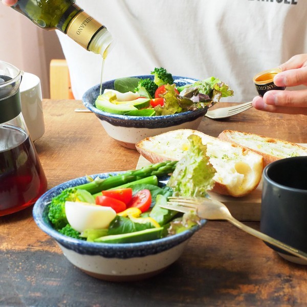 美濃燒 CHIPS 沙拉碗 麥片碗 [偶拾小巷] 日本製藍色點點|藍綠色|芥末黃|沙藍色|藍白色|黑色|白色|彩色點點|黑色點點|橘色|灰色|紅色Bowls[偶拾小巷]