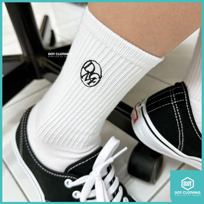DISCERNMENT DCM 厚底 刺繡 LOGO 純棉 長襪 毛巾底 厚底 好穿 白 黑 百搭 熱銷 DOT 聚點白色 F(男女皆可穿)|黑色F(男女皆可穿)[DOT 聚點]