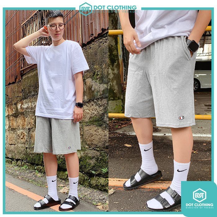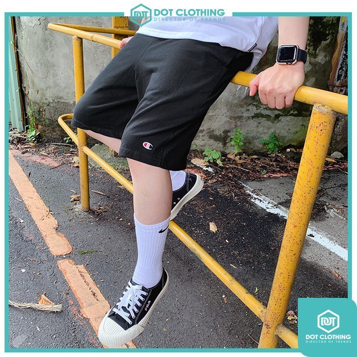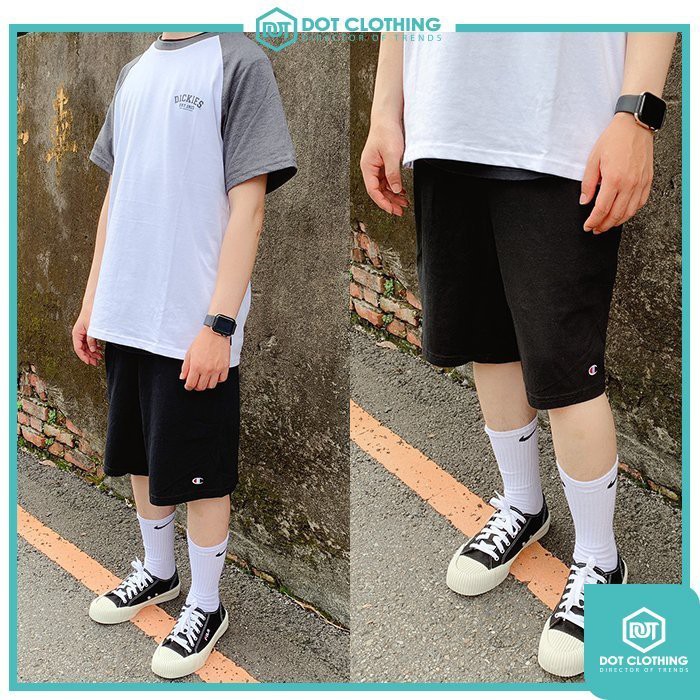 CHAMPION SHORTS 黑 淺灰 小LOGO 素面 刺繡 棉短褲 口袋 拉繩 男 夏日 冠軍 短褲 DOT聚點