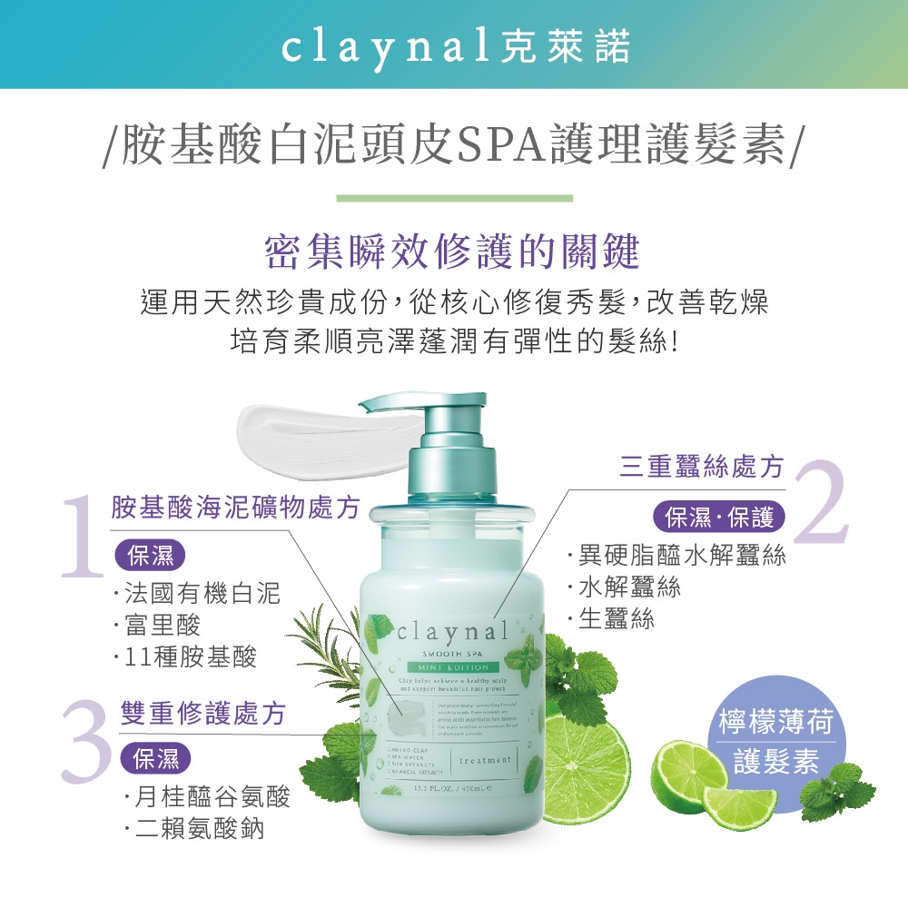 【claynal克萊諾】胺基酸白泥頭皮SPA護理洗髮精(檸檬薄荷)450ml【claynal克萊諾】胺基酸白泥頭皮SPA護理洗髮精(檸檬薄荷)450mlShampooBeyond__beauty