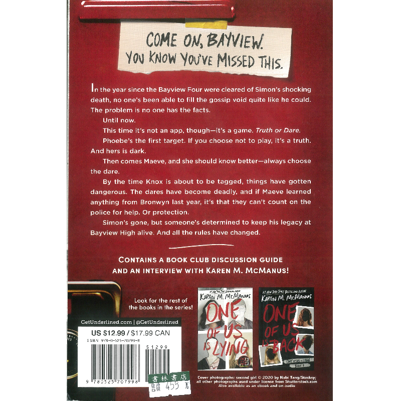 One of Us Is Next《看誰在說謊》One of Us Is Lying 精彩續集 Karen M. McManus 青少年英文小說正常品|瑕疵特價品Classic Literature 書林書店bookmanbooks