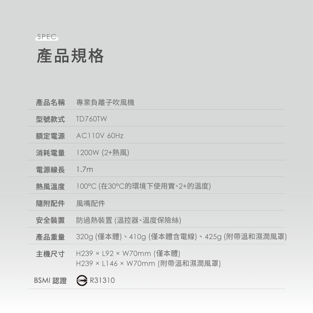 TESCOM TD760TW 吹風機 智能風溫 高濃度負離子 羽量體積 A級福利品 Beutii白色|奶茶色Hair ToolsBeutii質感家電選品