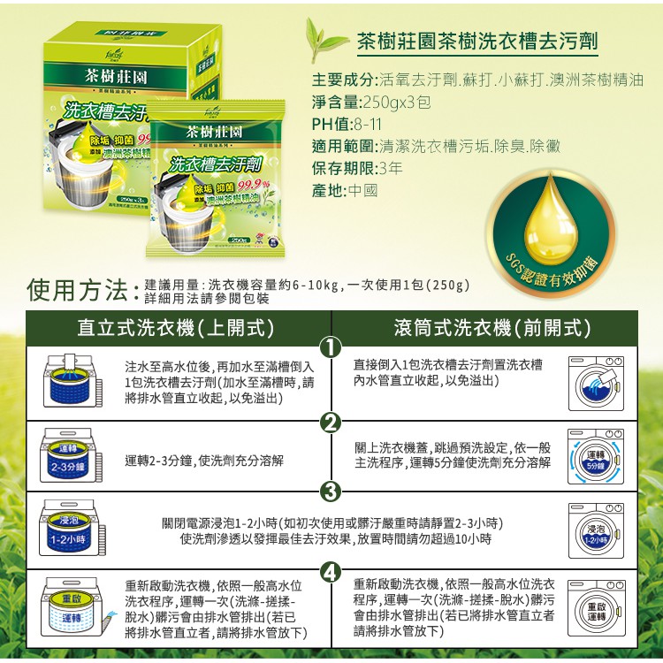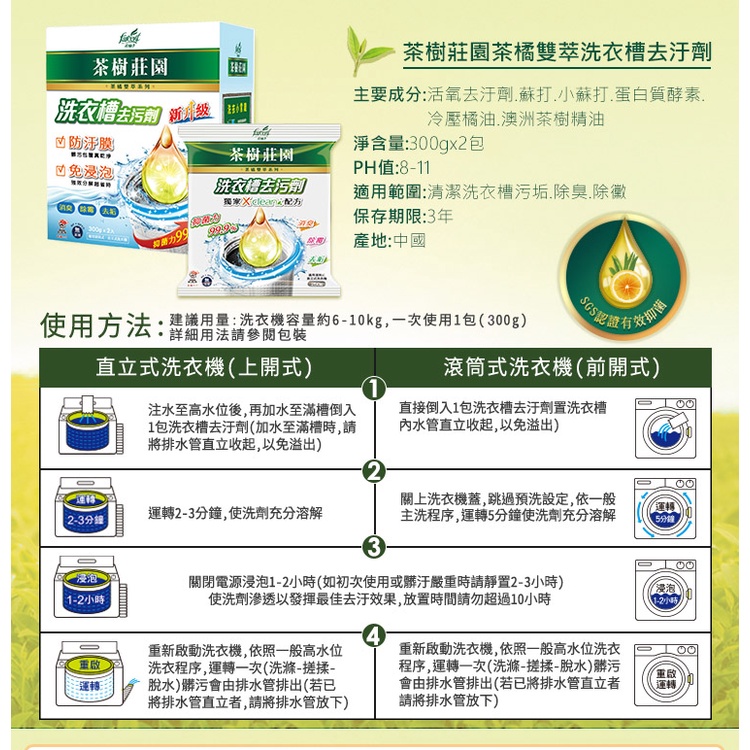 茶樹莊園 洗衣槽去汙劑 (茶樹精油250g /茶橘雙萃300g)茶樹精油250gX3包(一盒3包)|茶橘雙萃300gX2包(一盒2包)Cleaning Agents 阿秒市集