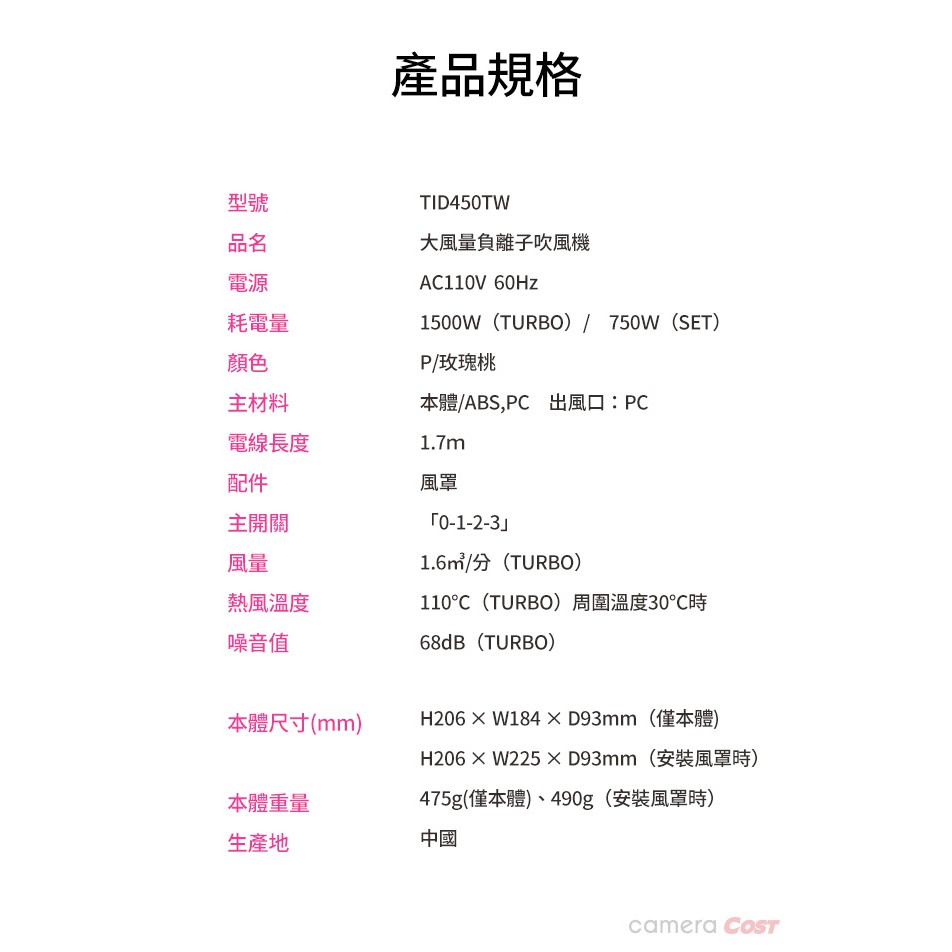 TESCOM TID450 大風量負離子吹風機 Beutii粉色Hair ToolsBeutii質感家電選品