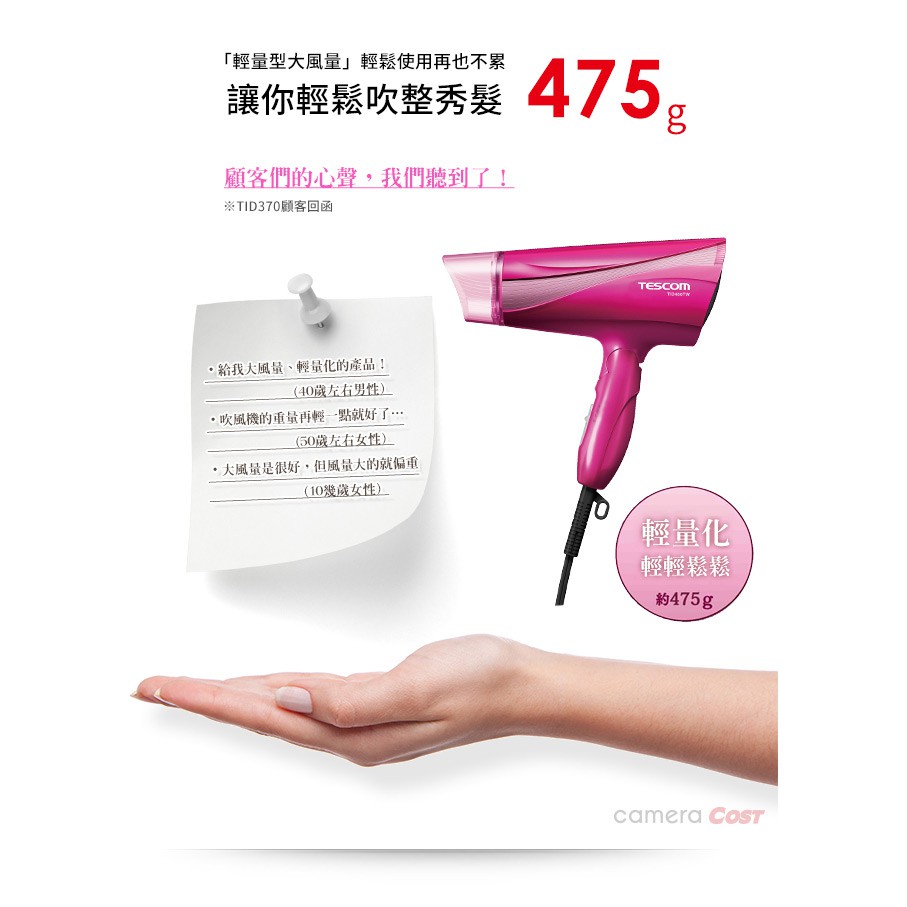 TESCOM TD550A 輕巧大風量吹風機 負離子 1.9㎥/分 溫風護理 抑制染後褪色 原廠保固 Beutii粉|白Hair ToolsBeutii質感家電選品