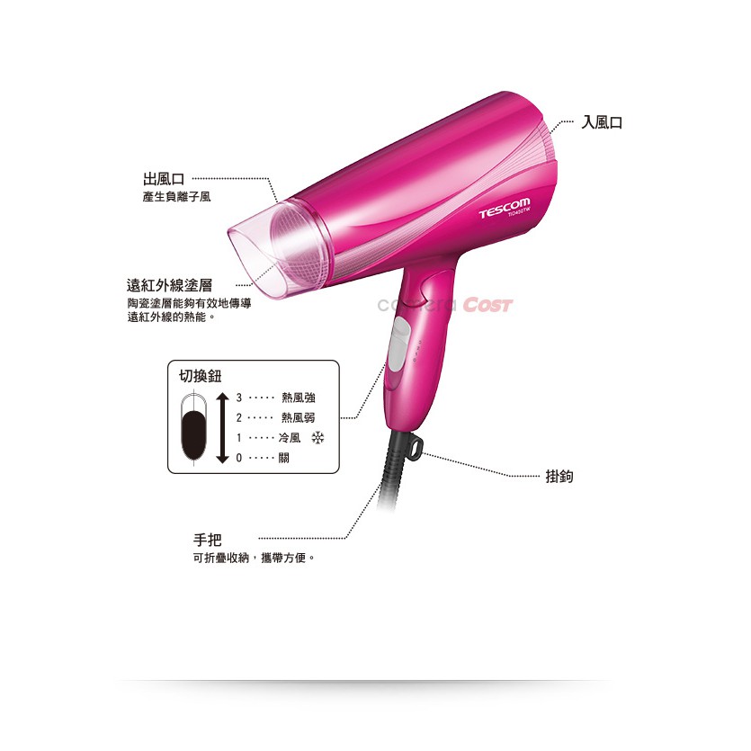 TESCOM 超輕型大風量負離子吹風機 TD480TW (紅) 雙重負離子 大風量 可折疊 速導熱 不傷髮 BeutiiTESCOM 超輕型大風量負離子吹風機 TD480TW (紅) 雙重負離子 大風量 可折疊 速導熱 不傷髮 BeutiiHair ToolsBeutii質感家電選品
