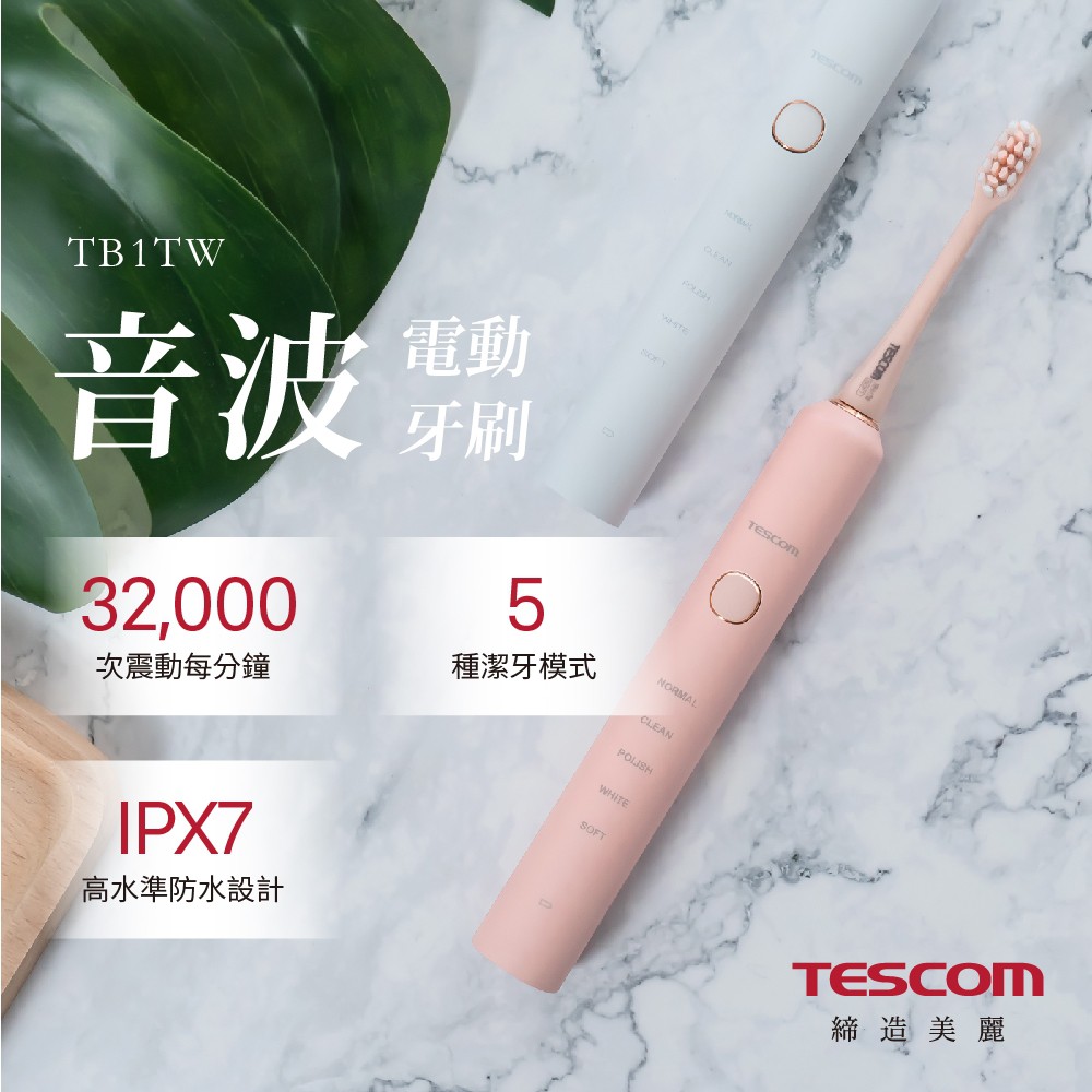 TESCOM 音波電動牙刷 TB1TW 兩色可選 Beutii粉色牙刷|白色牙刷|粉色牙刷刷頭(五入)|白色牙刷刷頭(五入)Oral CareBeutii質感家電選品