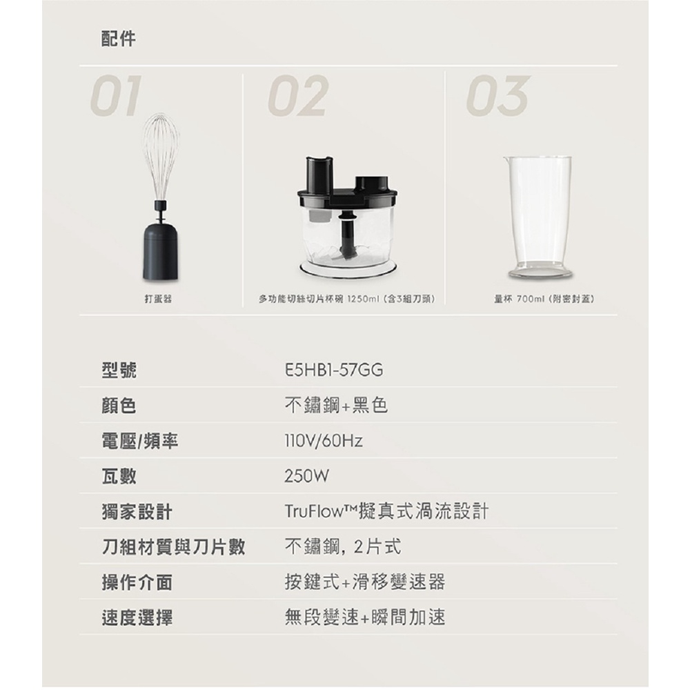 Electrolux 伊萊克斯 手持式調理攪拌棒 E5HB1-57GGE5HB1-57GG|E5HB1-57GG限時特賣Mixers 伊萊克斯家電旗艦館