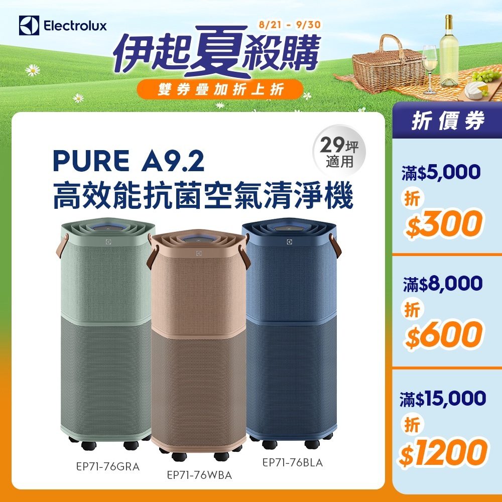 Electrolux 伊萊克斯Pure A9.2高效能抗菌空氣清淨機(EP71-76WBA/BLA/GRA)EP71-76BLA|EP71-76GRA|EP71-76WBA|EP71-76WBA限時特賣|EP71-76BLA限時特賣|EP71-76GRA限時特賣Air Treatment 伊萊克斯家電旗艦館