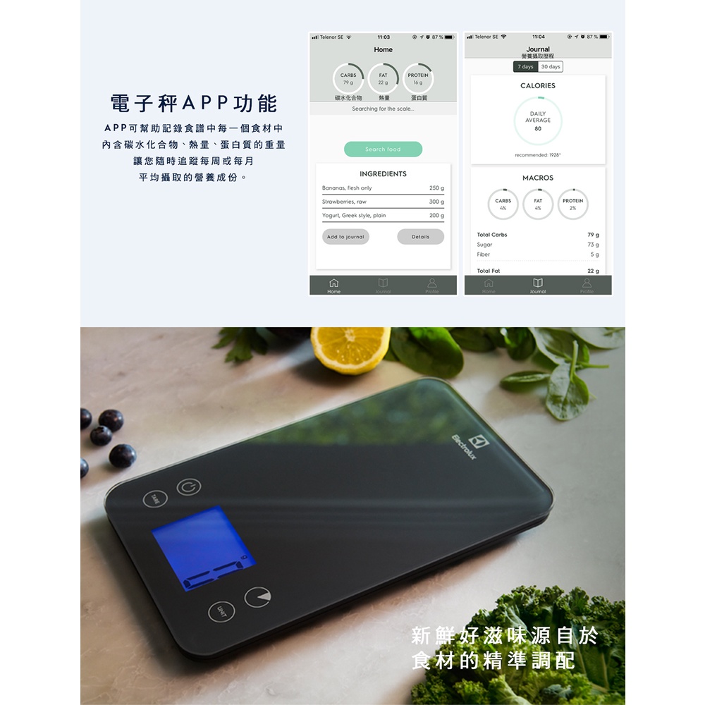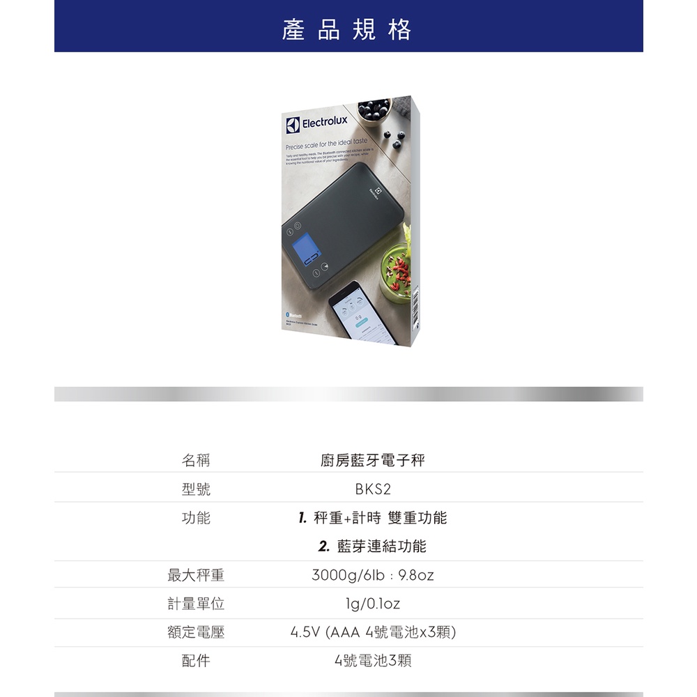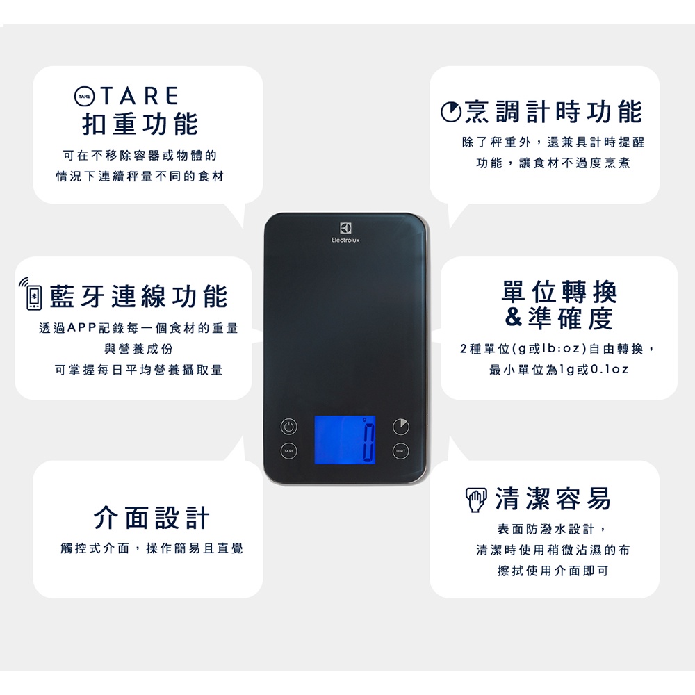 Electrolux 伊萊克斯 廚房藍牙料理電子秤(BKS2)Electrolux 伊萊克斯 廚房藍牙料理電子秤(BKS2)Kitchen Weighing Scales 伊萊克斯家電旗艦館