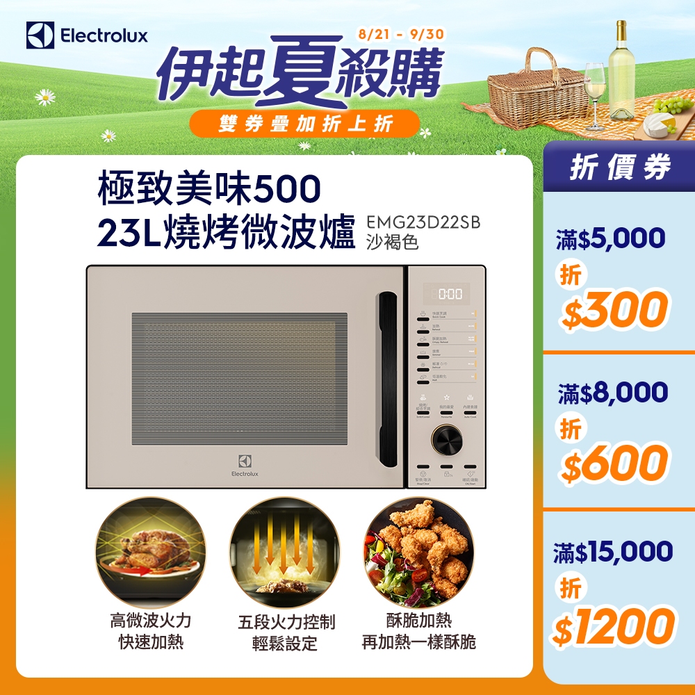 Electrolux 伊萊克斯 極致美味500 23L獨立式燒烤微波爐沙褐色(EMG23D22SB)Electrolux 伊萊克斯 極致美味500 23L獨立式燒烤微波爐沙褐色(EMG23D22SB)Microwaves 伊萊克斯家電旗艦館