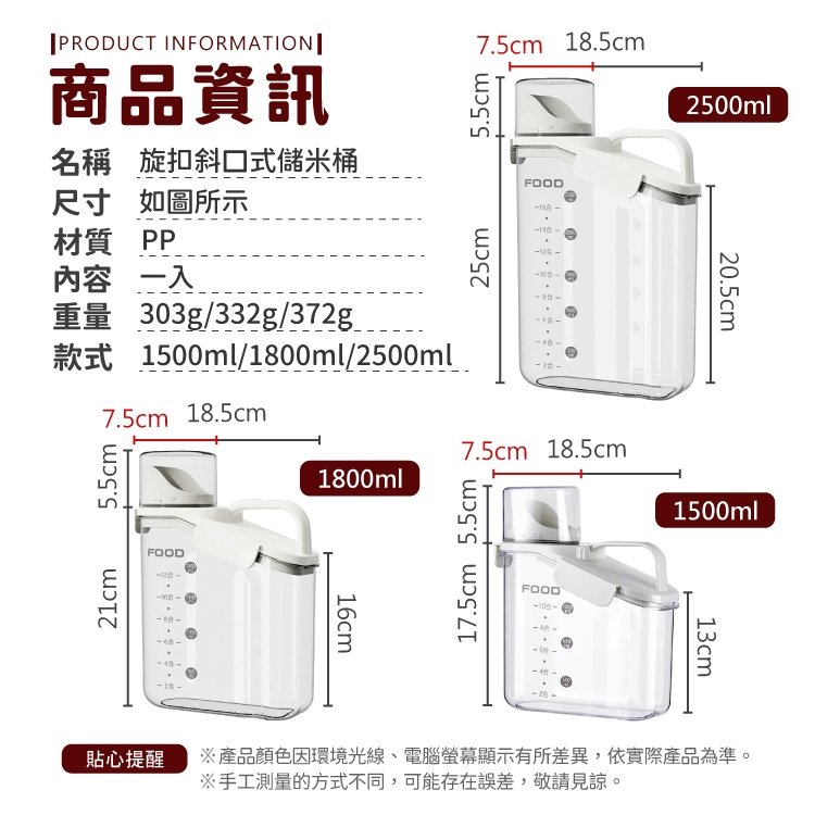 量杯密封罐 儲米桶 密封罐 五穀雜糧罐 收納罐 雜糧罐 米桶 量杯米桶 飼料罐 食品密封罐 【小麥購物】【G189】X|中|1800mlFood Storage 小麥購物