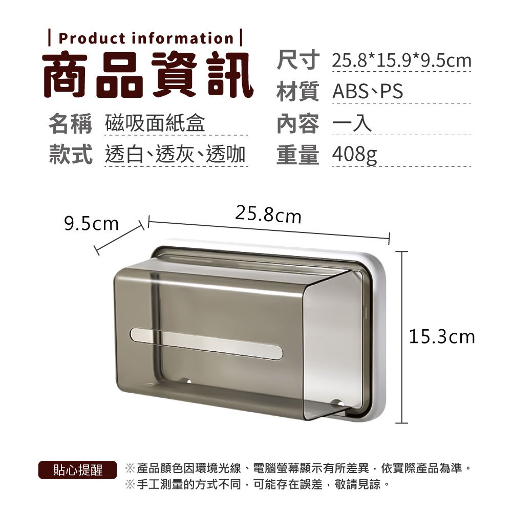 磁吸面紙盒 面紙盒 衛生紙架 衛生紙盒 衛生紙 面紙 廁所 磁吸 免打孔 紙巾架 面紙收納盒【小麥購物】【Y845】透白(一般款/縫隙造型款隨機出貨)|透灰(一般款/縫隙造型款隨機出貨)|透咖(一般款/縫隙造型款隨機出貨)Tissue Holders 小麥購物