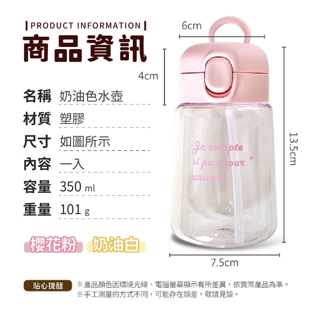奶油色水壺 吸管水壺 水壺 手提水壺 水瓶 彈蓋水壺 吸管杯 迷你水壺 水瓶 杯子 透明 隨身杯【小麥購物】【G190】奶油白|櫻花粉Cups, Mugs & Glasses 小麥購物