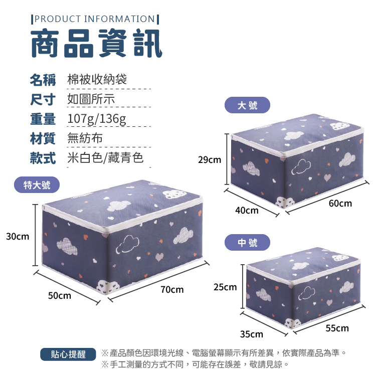棉被收納袋 收納袋 衣物袋 整理袋 收納 棉被袋【小麥購物】整理 居家 生活 衣物收納袋 衣櫃 【Y481】米白雲朵|小款|藏青雲朵|大款|藏青雲朵|小款|米白雲朵|大款Wardrobe Organizers 小麥購物