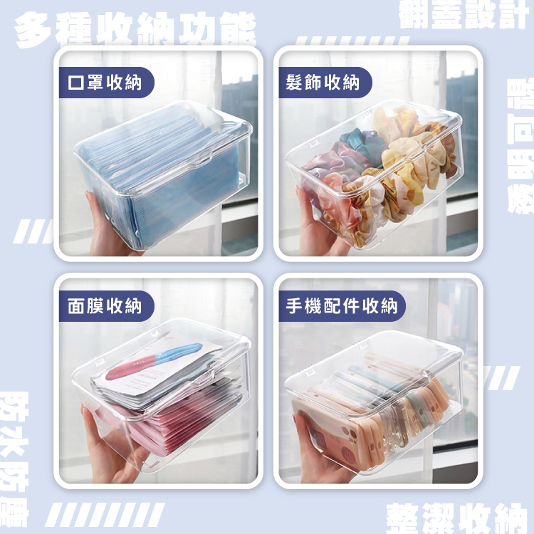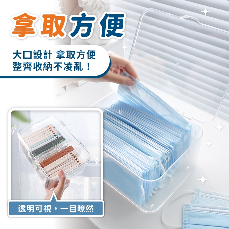 翻蓋透明收納盒 透明收納盒 口罩收納盒 收納盒 透明盒 整理盒 防塵收納 簡約收納盒 收納【小麥購物】【G564】透白|透灰Desk Organizers 小麥購物