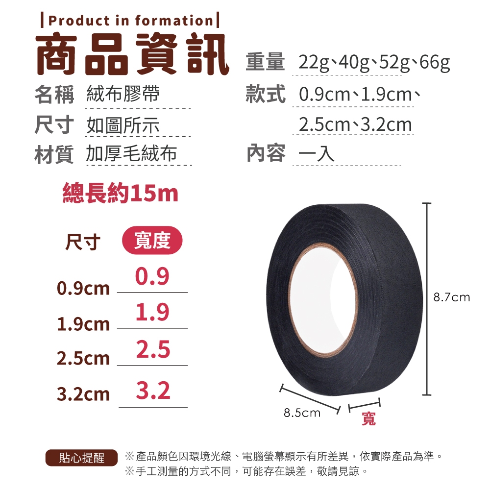 絨布膠帶 線路固定膠帶 汽車音響膠帶 音響主機膠帶 電線收納 絨布貼 整線膠帶【小麥購物】【Y129】0.9cm(全長約15米)|1.9cm(全長約15米)|2.5cm(全長約15米)|3.2cm(全長約15米)Industrial Adhesives & Tapes 小麥購物