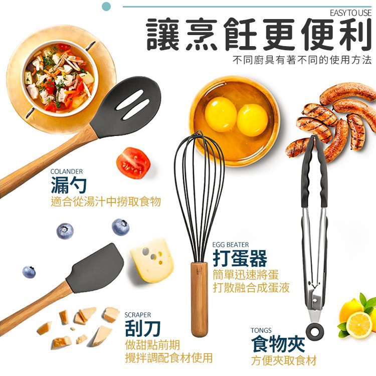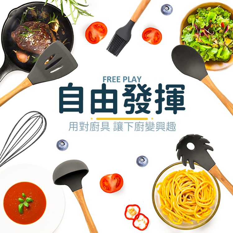 矽膠廚具 不沾鍋廚具 煎鏟 鍋鏟 湯勺 打蛋器 撈麵勺 食物夾 廚房用具 烘焙料理 木柄 含掛孔【小麥購物】【Y302】漏鏟|撈麵勺|刷子|食物夾|密鏟|密勺|湯勺|漏勺|平頭勺|刮刀|飯匙Spatulas & Cooking Tweezers 小麥購物