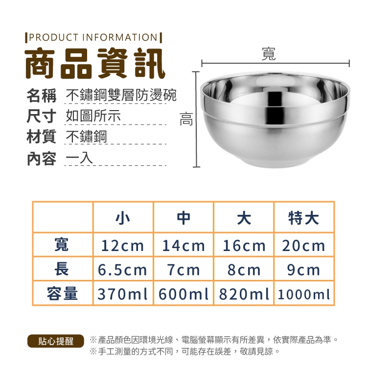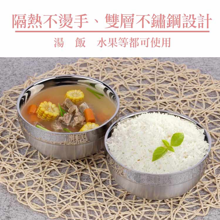 不鏽鋼雙層防燙碗 不鏽鋼碗 防燙碗 兒童碗 兒童防摔碗 飯碗 湯碗 防滑碗 防摔碗 餐具 環保【小麥購物】【Y498】大-高8x寬16cm|容量820ml|中-高7x寬14cm|容量600ml|小-高6.5x寬12cm|容量370m|特大-高9x寬20cm|容量1000mlBowls 小麥購物