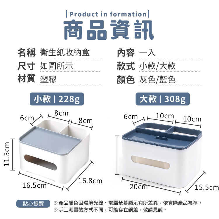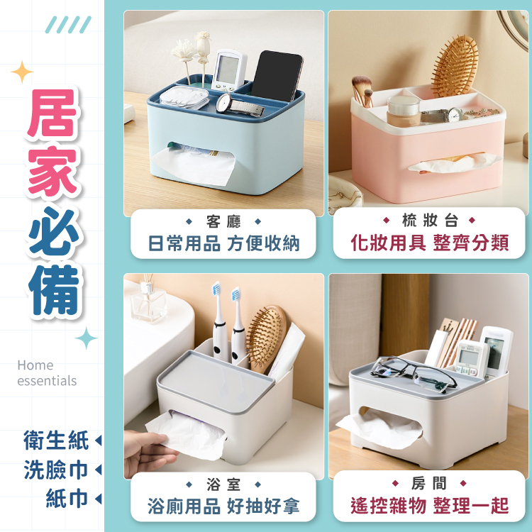 衛生紙收納盒 面紙收納盒 收納盒 置物盒 面紙盒 紙巾盒 衛生紙盒 桌面收納盒 多功能面紙盒【小麥購物】【C423】灰白色|小款|灰色|大款|藍色|大款Tissue Holders 小麥購物
