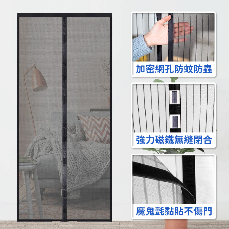 磁吸門簾 磁吸窗簾 防蚊門簾 磁吸防蚊門簾 空調門簾 空調簾 遮擋簾 防蚊簾 防蚊紗門 門簾【小麥購物】【C437】黑色(魔鬼氈/圖釘款隨機出貨)|白色(魔鬼氈/圖釘款隨機出貨)Curtains & Blinds 小麥購物