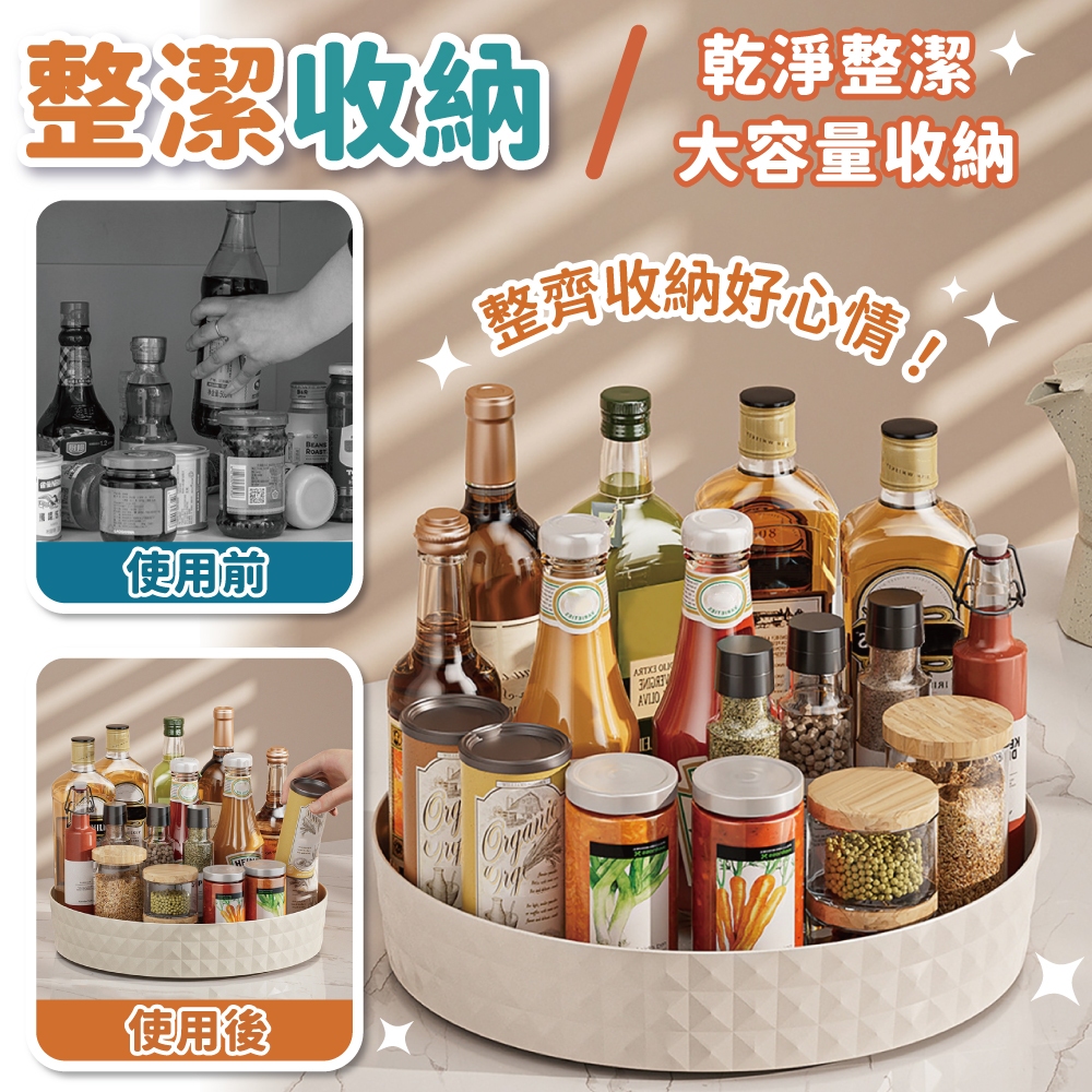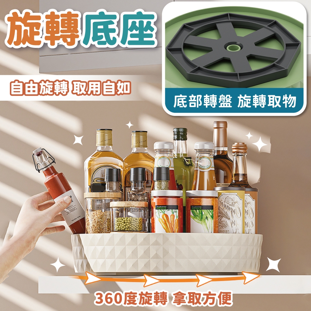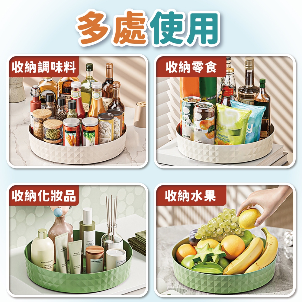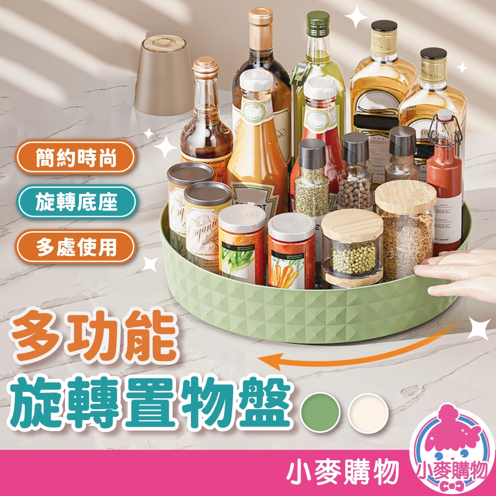 多功能旋轉置物盤 化妝品收納盒 廚房收納 調味料收納盒 收納盒 收納盤 收納旋轉盤 旋轉置物盤【小麥購物】【C493】奶油白|抹茶綠Kitchen Racks 小麥購物