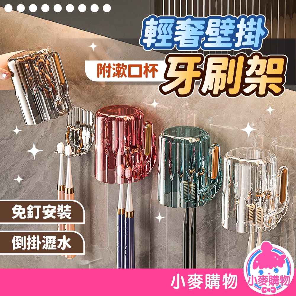 輕奢壁掛牙刷架 透明漱口杯 牙刷杯架 牙刷置物架 牙刷杯 洗漱杯 盥洗杯 盥洗用品 浴室收納【小麥購物】【G830】北歐白|典雅黑Toothbrush Holders & Toothpaste Dispensers 小麥購物