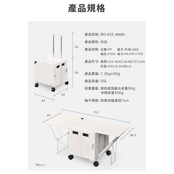【關注領券折100】bonson 摺疊收納餐桌款推車 野餐可用 隱藏式桌板 大容量可折疊 Beutii