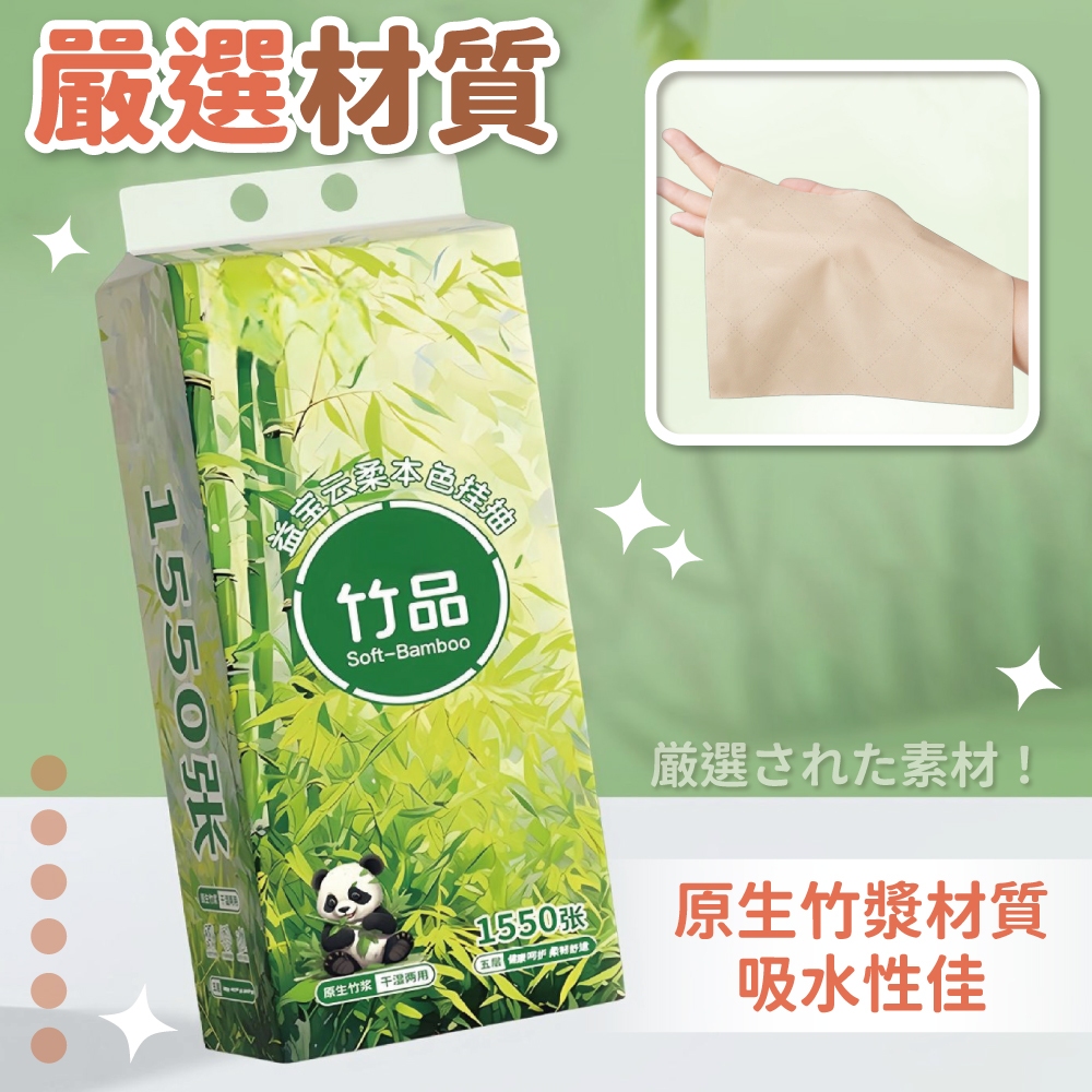1550張大容量 懸掛式衛生紙 五層 本色面紙 加厚 懸掛式抽紙 衛生紙 擦手紙 紙巾 面紙【小麥購物】【B111】熊貓竹品-1包Tissue & Paper Towels 小麥購物