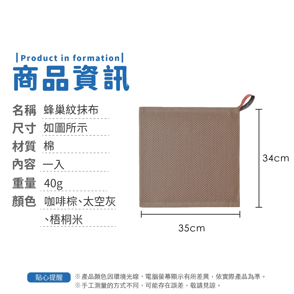 蜂巢紋抹布 吸水抹布 純棉抹布 去油污抹布 吸水抹布 擦桌面抹布 廚房抹布【小麥購物】【G722】太空灰|梧桐米|咖啡棕Cleaning Cloths 小麥購物