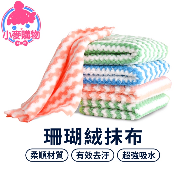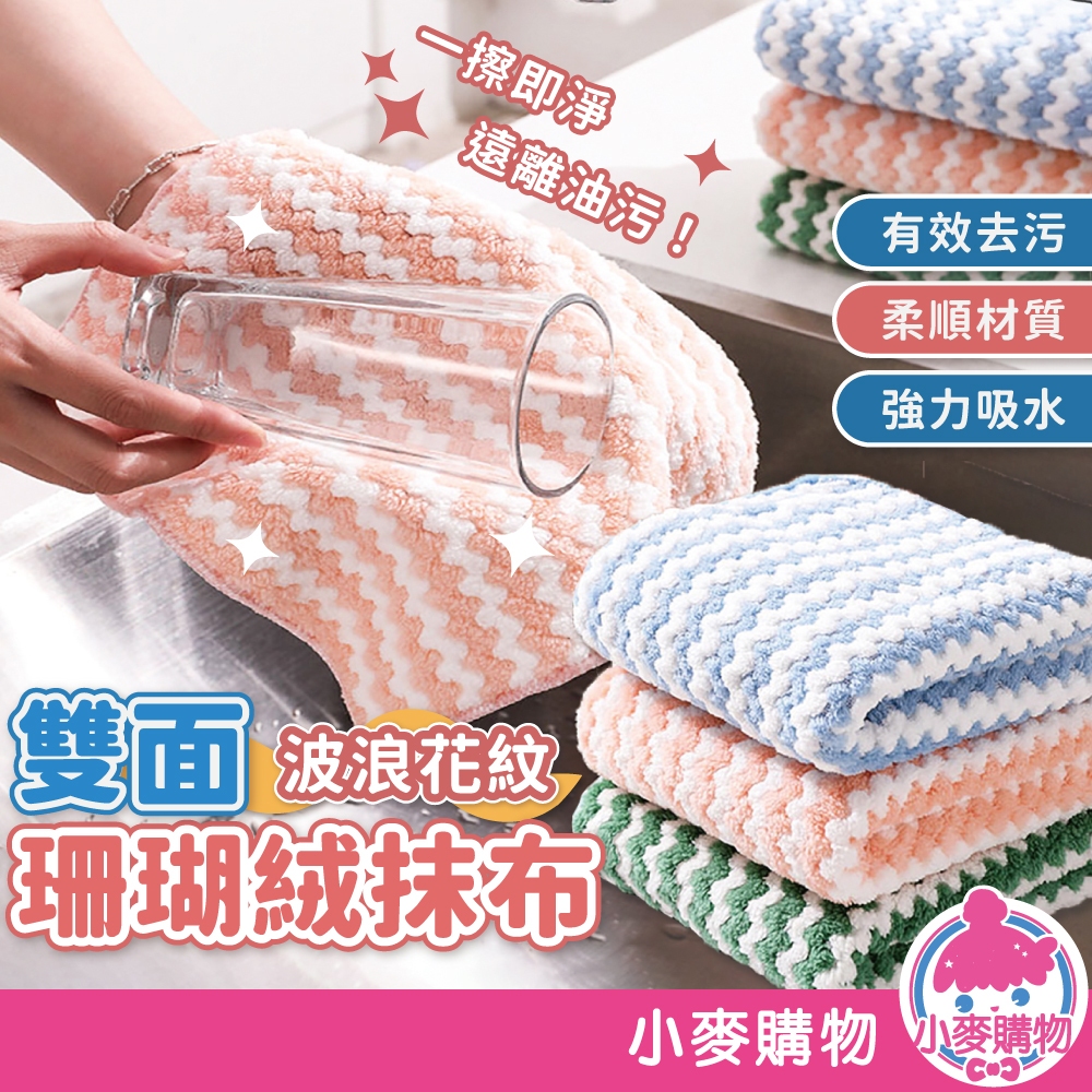 珊瑚絨抹布 廚房抹布 擦車布 超吸水抹布 波浪紋抹布 擦拭布 洗碗布 洗碗巾 去污抹布 條紋抹布【小麥購物】【Y165】顏色隨機|一入Cleaning Cloths 小麥購物