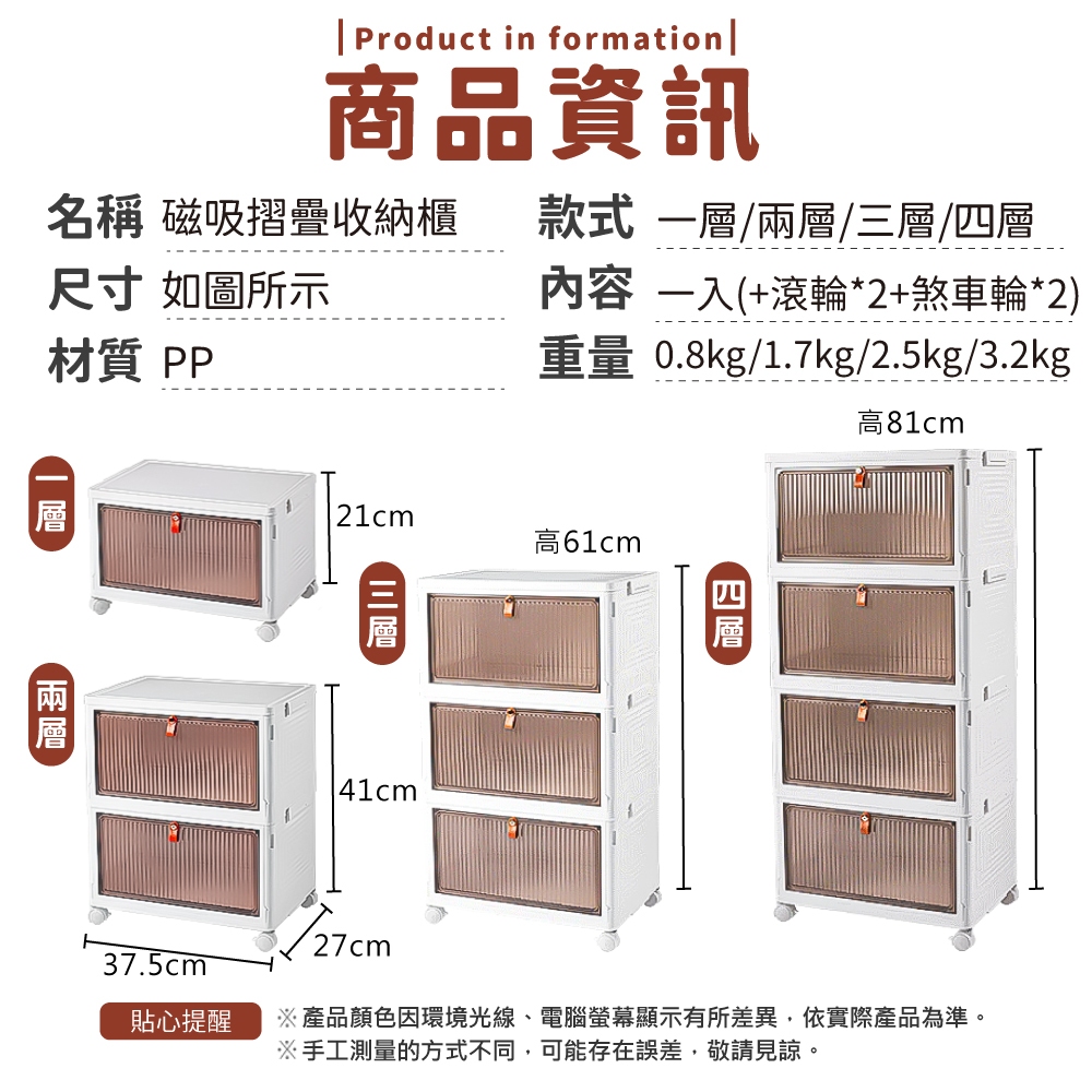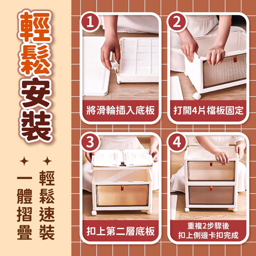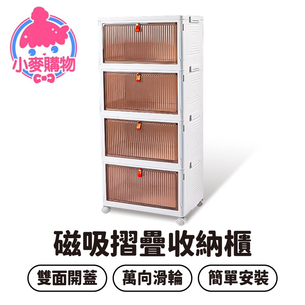 磁吸摺疊收納櫃 摺疊收納櫃 摺疊收納箱 收納 收納箱 整理箱 鞋盒 櫃子 箱子 衣物收納 【小麥購物】【B092】一層(本款式無提供輪子)|兩層Storage Boxes, Bags & Baskets 小麥購物