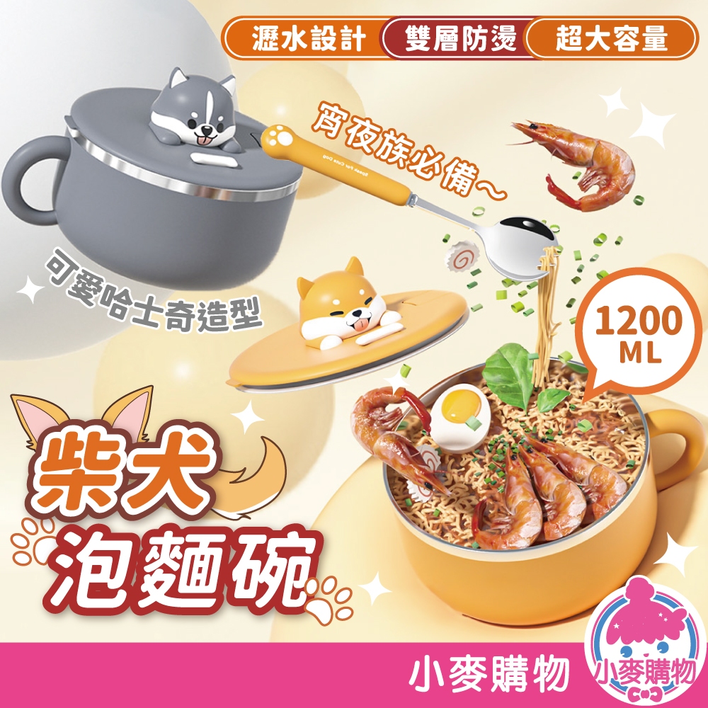 柴犬泡麵碗 泡麵碗 瀝水泡麵碗 附勺 不鏽鋼泡麵碗 隔熱碗 湯碗 不鏽鋼碗 碗 隔熱碗【小麥購物】【C598】柴犬|哈士奇Bowls 小麥購物