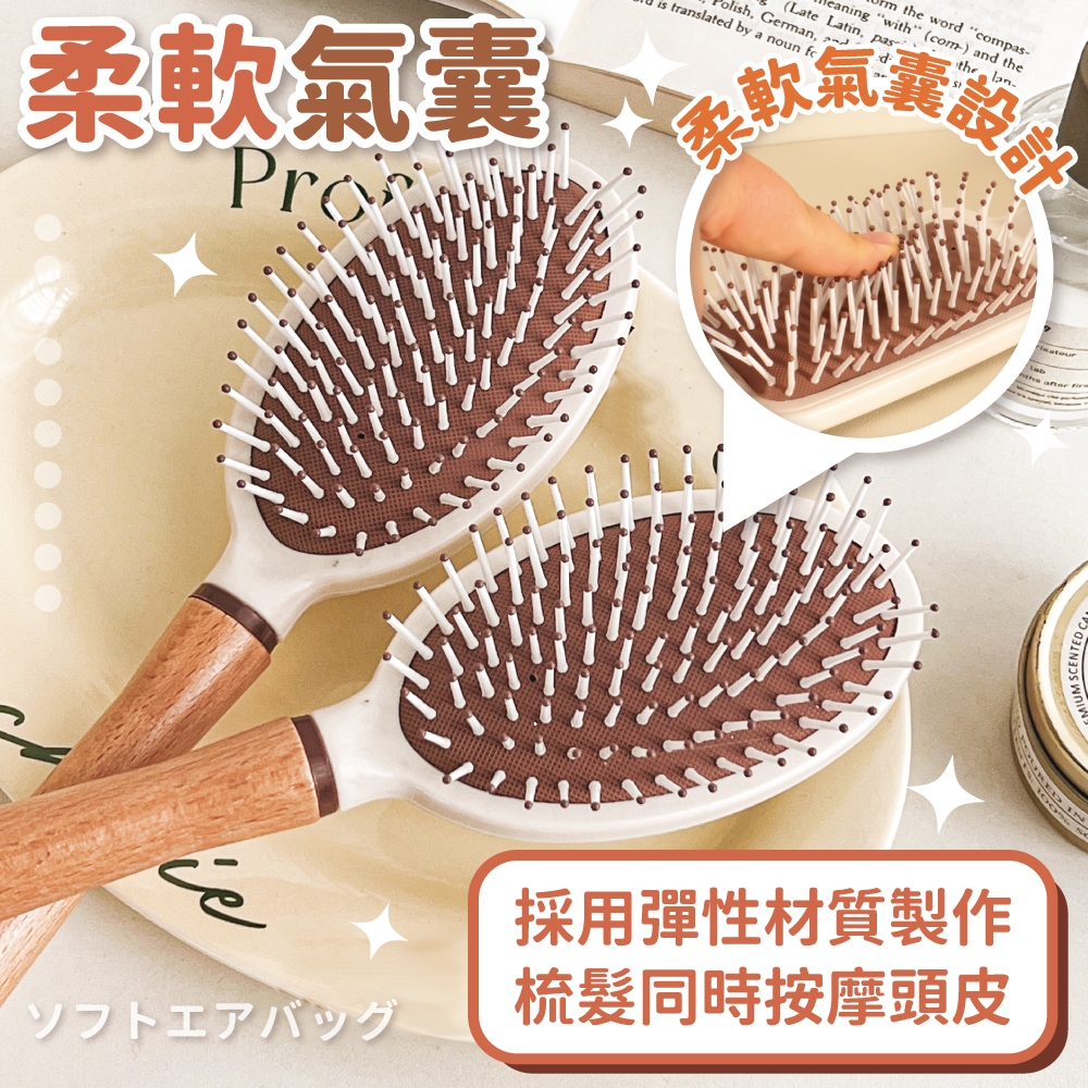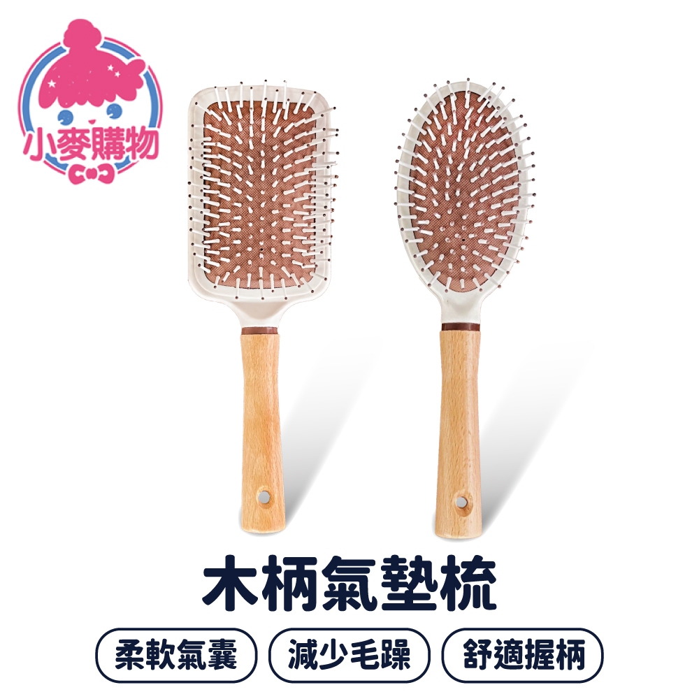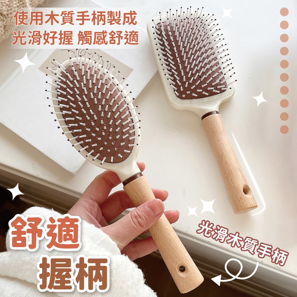 木柄氣墊梳 氣墊按摩梳 木質氣墊梳 梳子 氣墊梳 按摩梳 氣囊梳 梳頭髮 木柄氣囊梳【小麥購物】【G711】方形梳|橢圓梳Hair Tools 小麥購物
