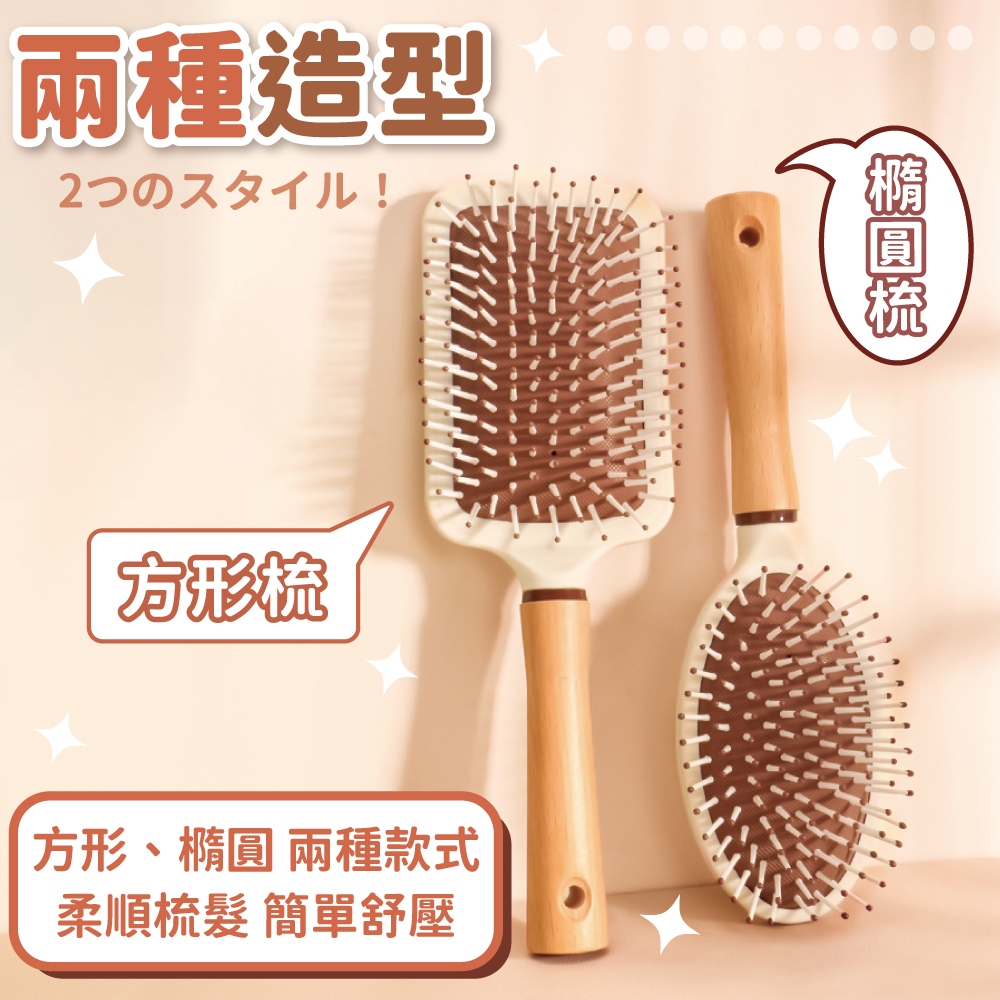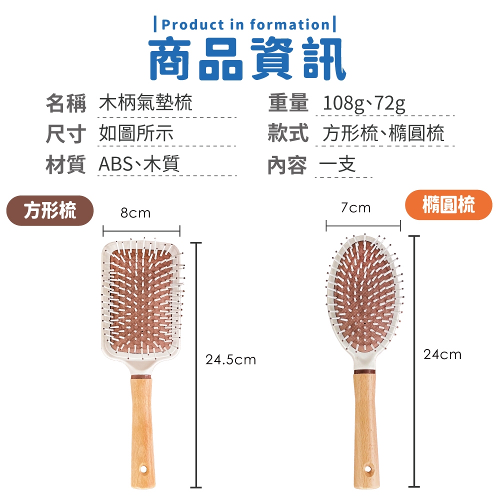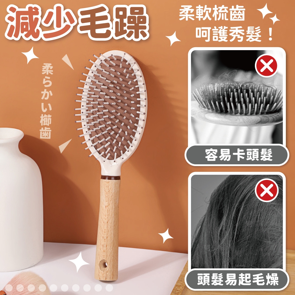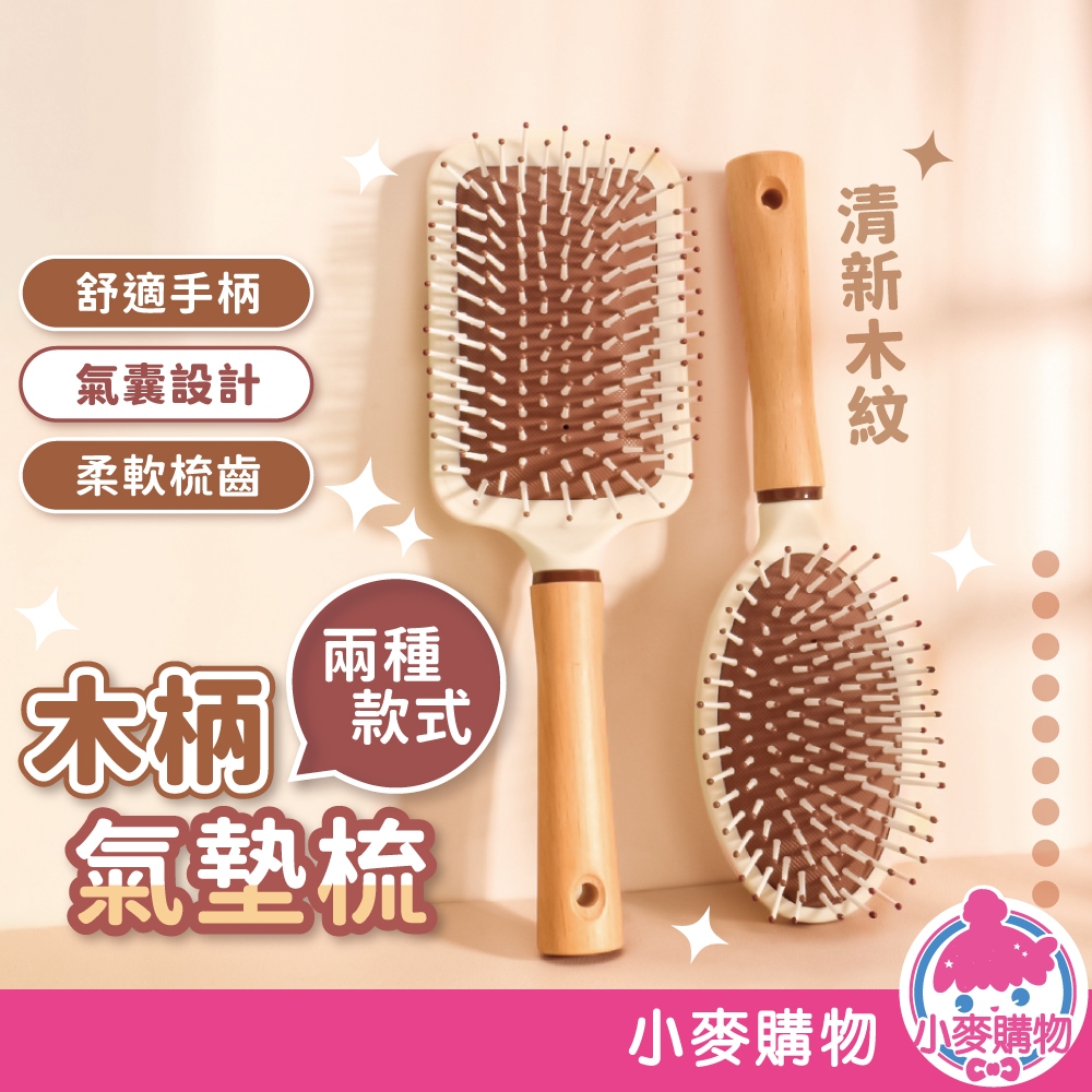 木柄氣墊梳 氣墊按摩梳 木質氣墊梳 梳子 氣墊梳 按摩梳 氣囊梳 梳頭髮 木柄氣囊梳【小麥購物】【G711】方形梳|橢圓梳Hair Tools 小麥購物