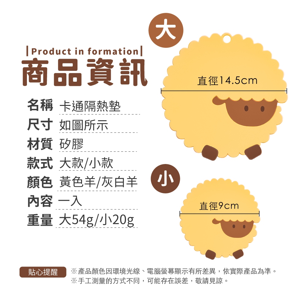 卡通隔熱墊 可愛小羊 杯墊 矽膠杯墊 造型杯墊 鍋墊 耐熱杯墊 防燙杯墊 止滑杯墊 隔熱墊【小麥購物】【G809】灰白羊|小|灰白羊|大|黃色羊|小|黃色羊|大Placemats & Coasters 小麥購物