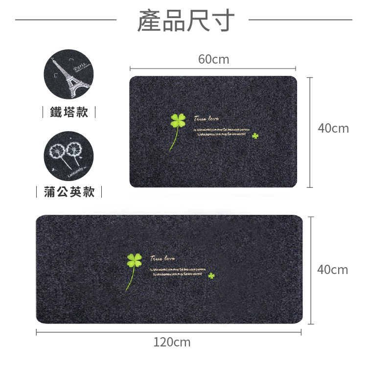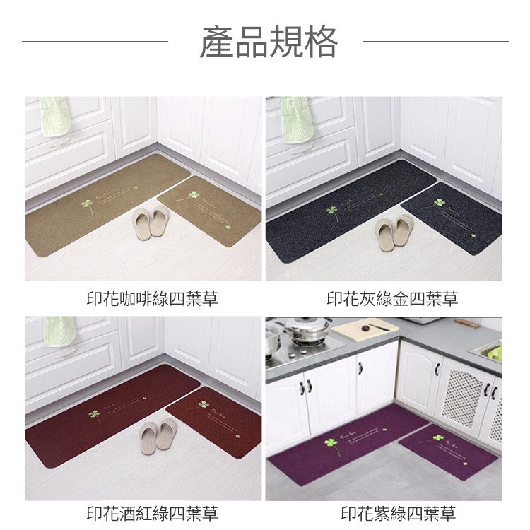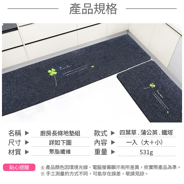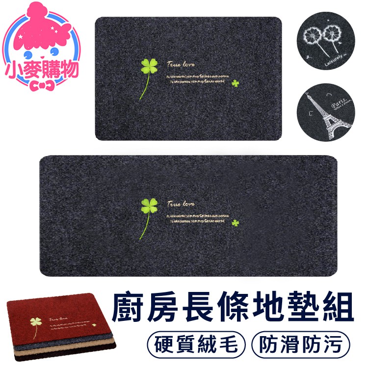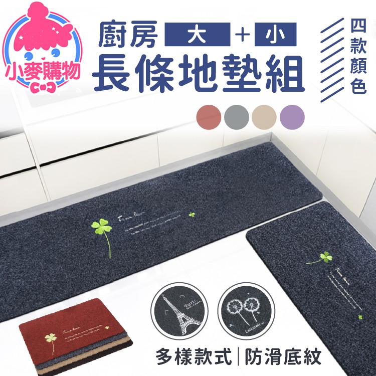 廚房長條地墊組 大+小 廚房地墊 長型地墊 防水地墊 防滑地墊 地毯 腳踏墊 踏墊 吸水地墊【小麥購物】【C040】灰綠金四葉草|紫綠四葉草|酒紅綠四葉草|咖啡綠四葉草|灰白四葉草|灰白蒲公英|灰白/灰金鐵塔Floor Mats 小麥購物