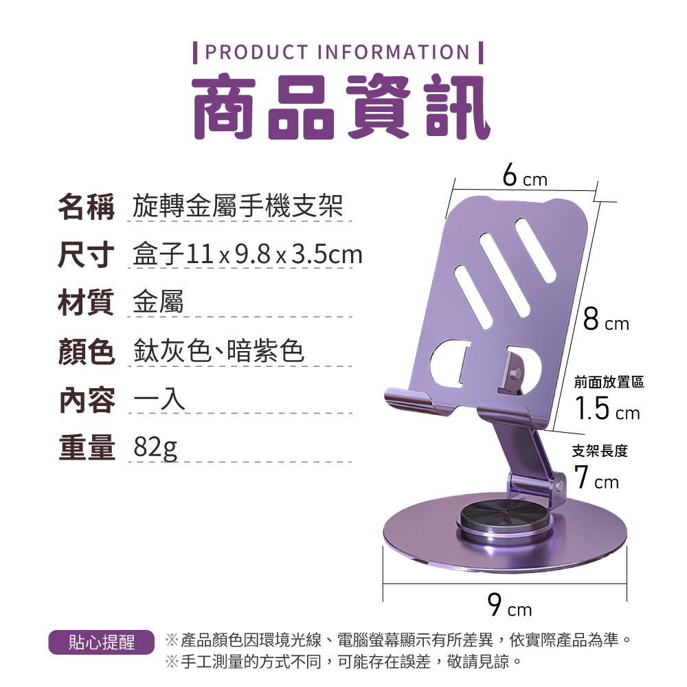 360°旋轉金屬手機支架 手機支架 旋轉 平板支架 折疊支架 直播架 手機座 手機架【小麥購物】【G724】鈦灰色|暗紫色Selfie Accessories 小麥購物